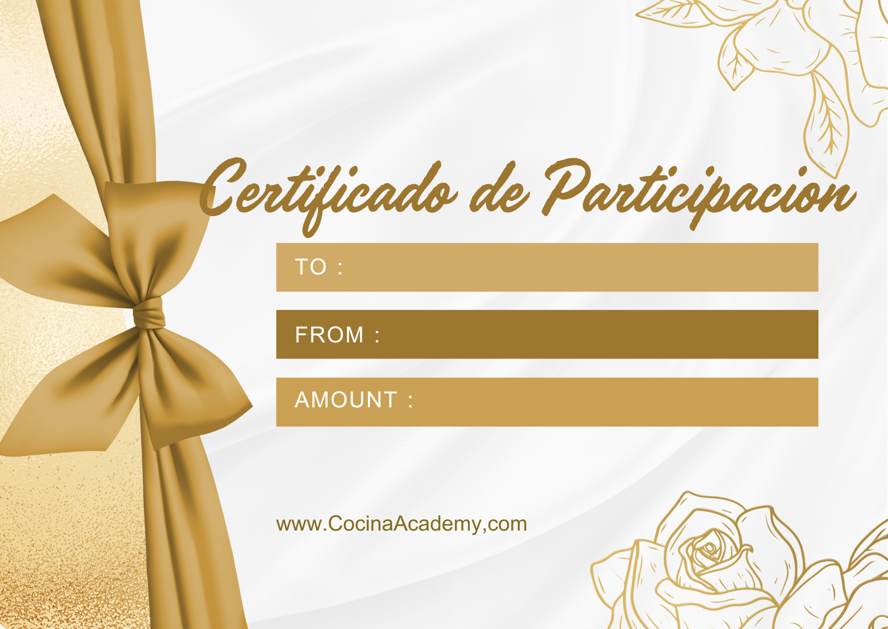 Enfoque en beneficios: «Tu Éxito Certificado .Obtén un certificado oficial que demuestre tu dominio en técnicas culinarias profesionales. Ideal para tu portafolio, CV o simplemente para celebrar tu crecimiento como cocinero. ¡Tu esfuerzo merece ser reconocido!»
